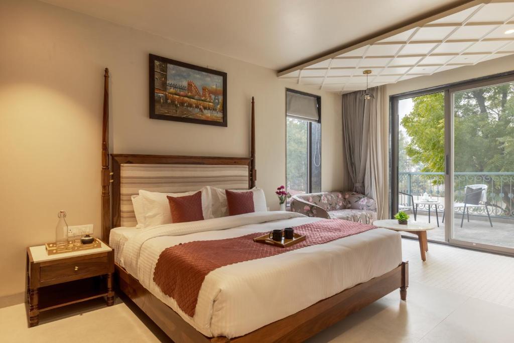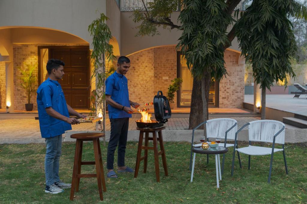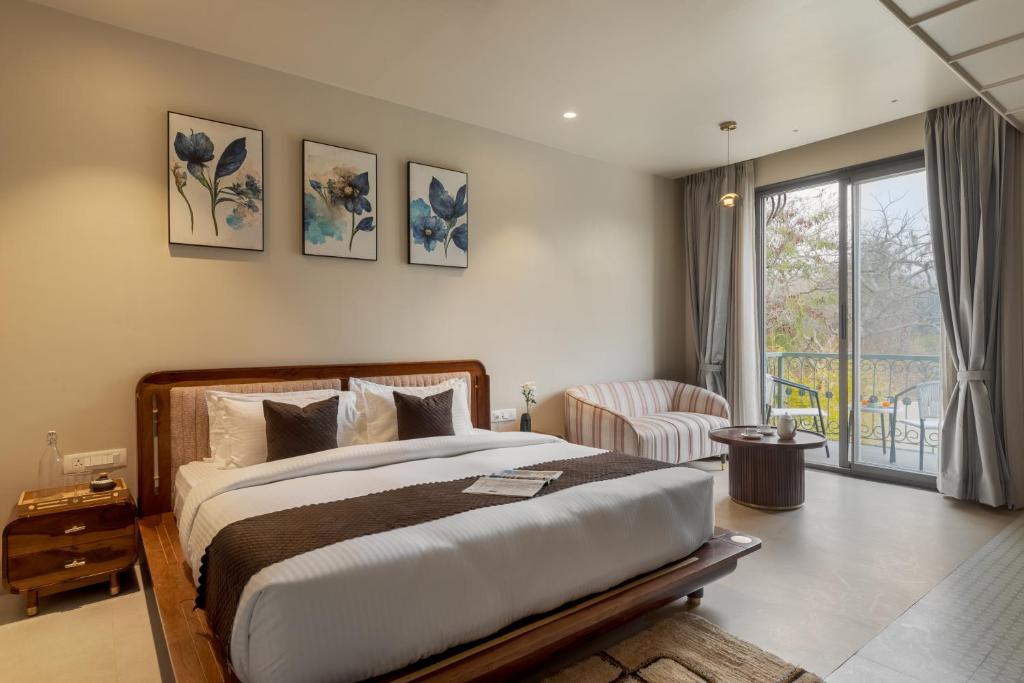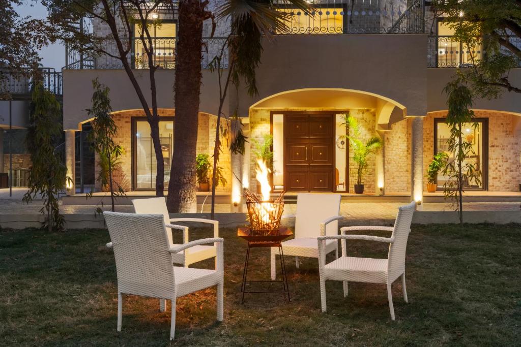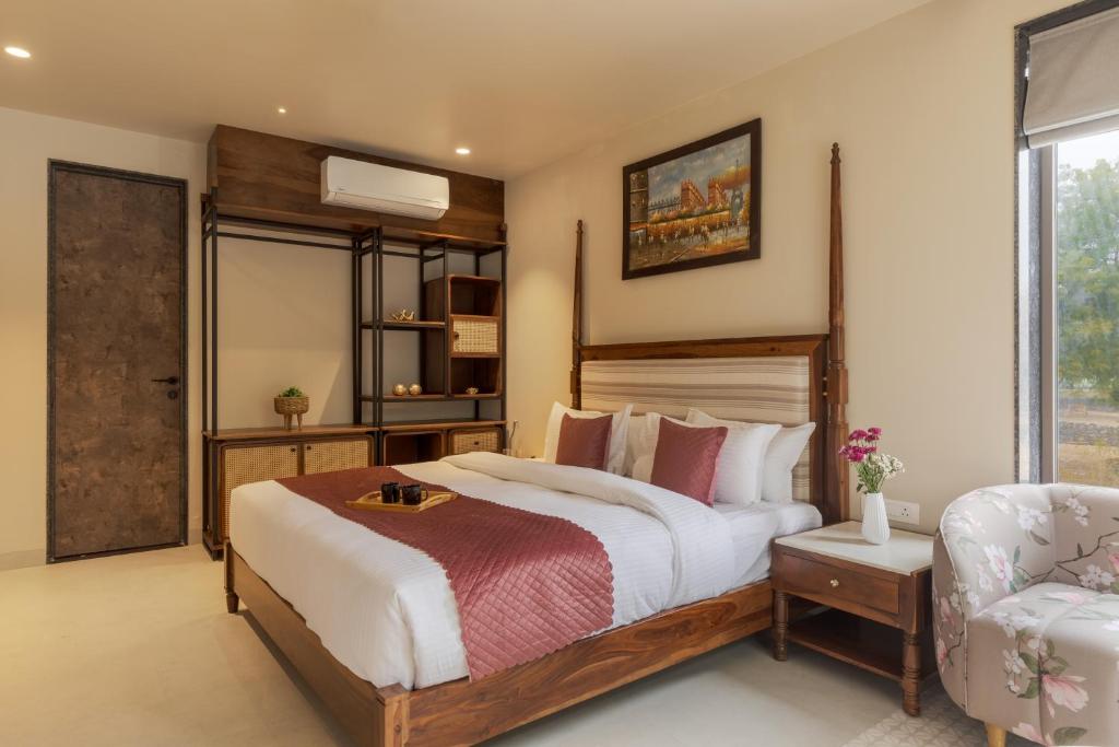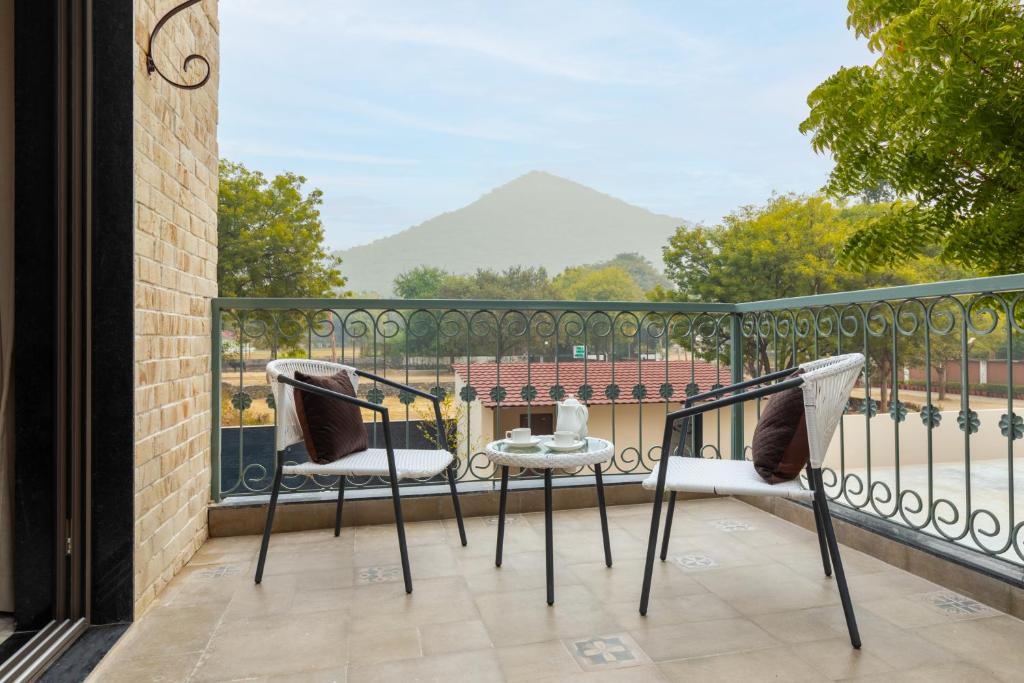 Tucked away in the serene surroundings of Udaipur,  Pristine Manor offers a perfect blend of luxury and tranquility, located just 4.2 miles from Jagdish Temple. The villa features an indoor pool, a pool with a view, an outdoor fireplace, and a beautiful balcony with stunning mountain views. Ideal for those seeking both relaxation and adventure, this villa provides a private and peaceful escape with easy access to Udaipur’s finest attractions.